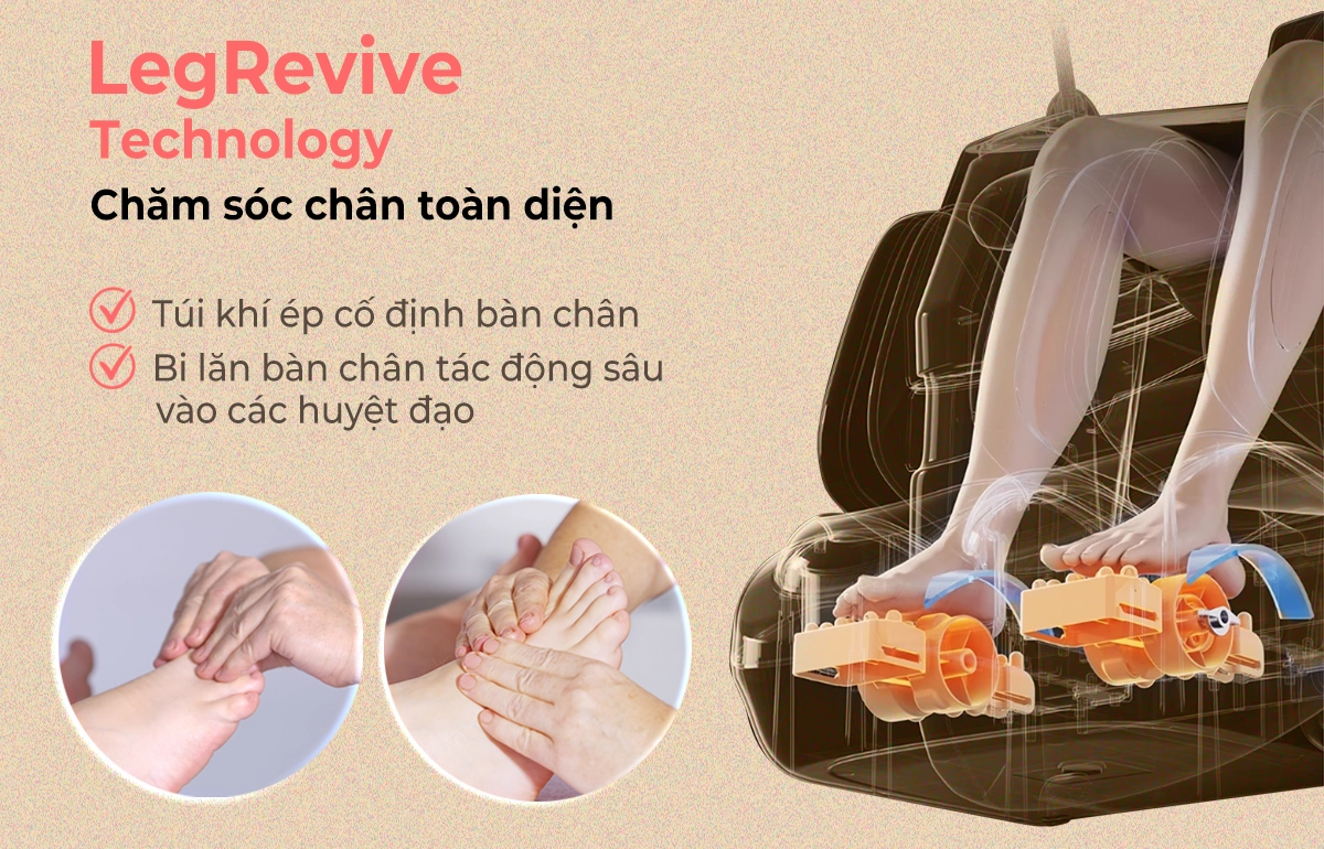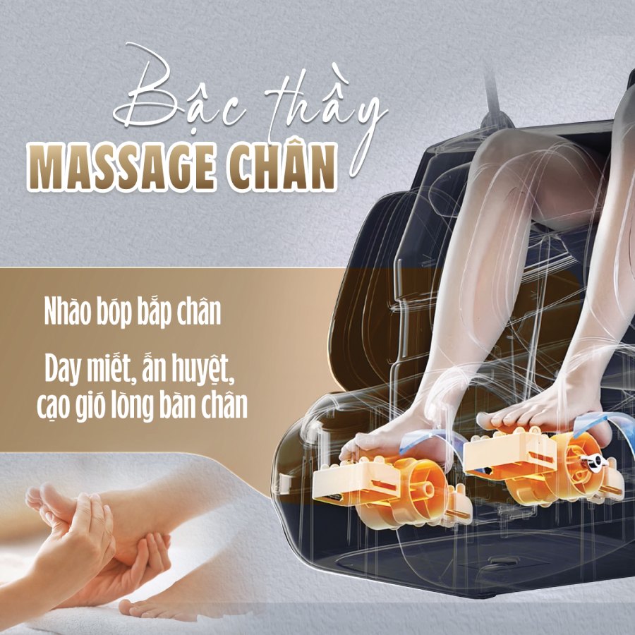 Với con lăn lòng bàn chân được nâng cấp hoàn toàn mới, giúp massage phần bắp chân và làm xoa dịu các cơn đau nhức ở lòng bàn chân, giảm căng thẳng, đồng thời còn thực hiện cạo gió lòng bàn chân mang lại cảm giác thư giãn chuyên sâu.