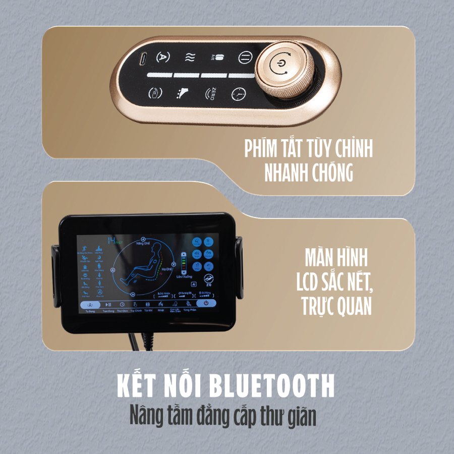 Với màn hình cảm ứng LCD, giúp bạn dễ dàng điều chỉnh các chế độ massage, kiểm soát thời gian và mức độ massage theo ý muốn.