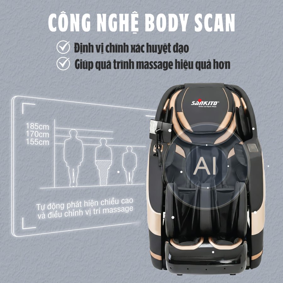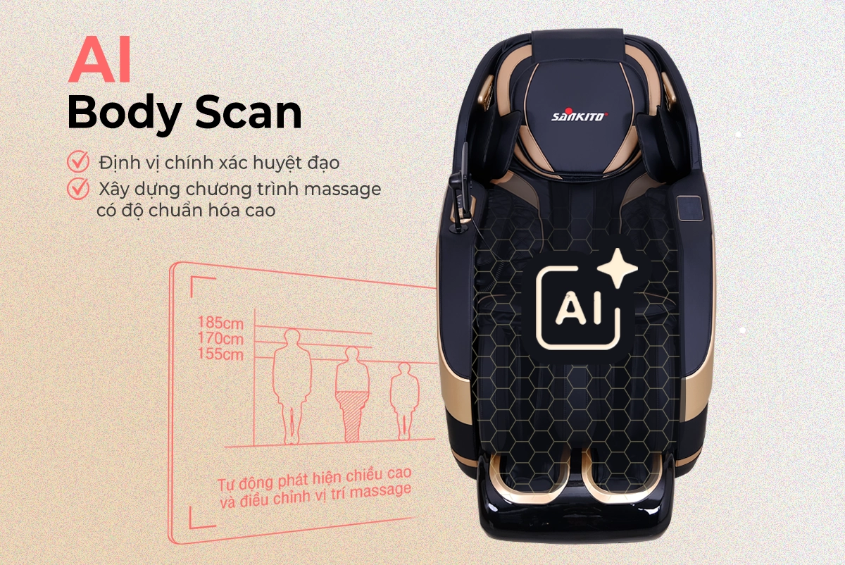 Khả năng dò quét cơ thể giúp ghế nhận diện kích thước và hình dạng cơ thể của người sử dụng, từ đó điều chỉnh chế độ massage sao cho phù hợp nhất với từng cá nhân, tối ưu hóa hiệu quả massage một cách tốt nhất.