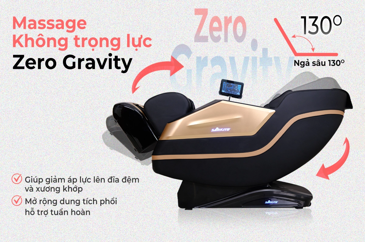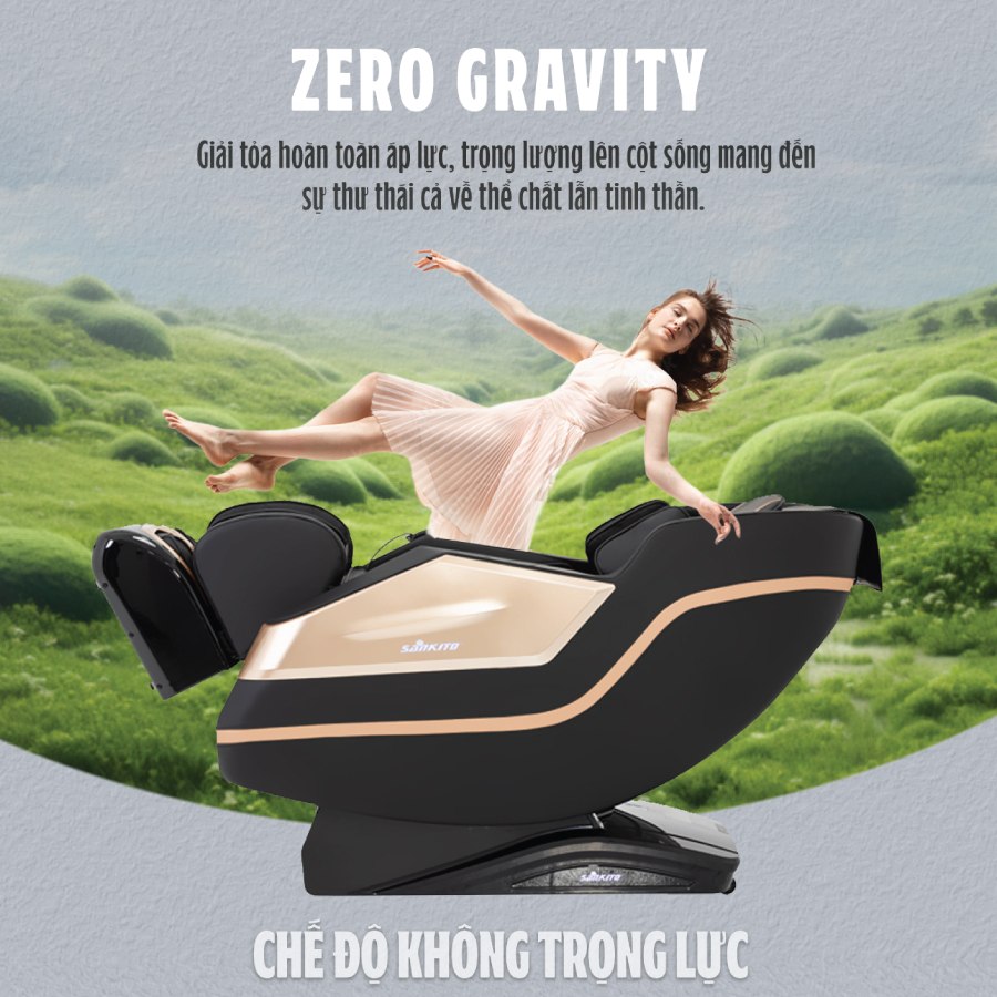 Tính năng không trọng lực giúp bạn cảm thấy như đang bay bổng trên không trung. Khi ghế nghiêng về phía sau, cơ thể của bạn sẽ ở vị trí gần như nằm ngang, giảm bớt sự chèn ép lên các khớp xương, giúp bạn thư giãn tối đa, đồng thời hỗ trợ cải thiện lưu thông máu.