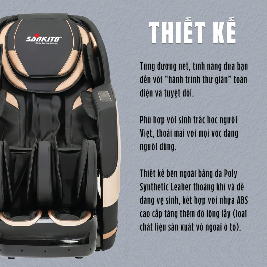 Ghế massage Sankito S-39 Luxury không chỉ là món đồ nội thất tinh tế, mà còn là người bạn đồng hành hoàn hảo trong hành trình chăm sóc sức khỏe, mang đến sự thư giãn và cải thiện thể chất một cách tuyệt vời.